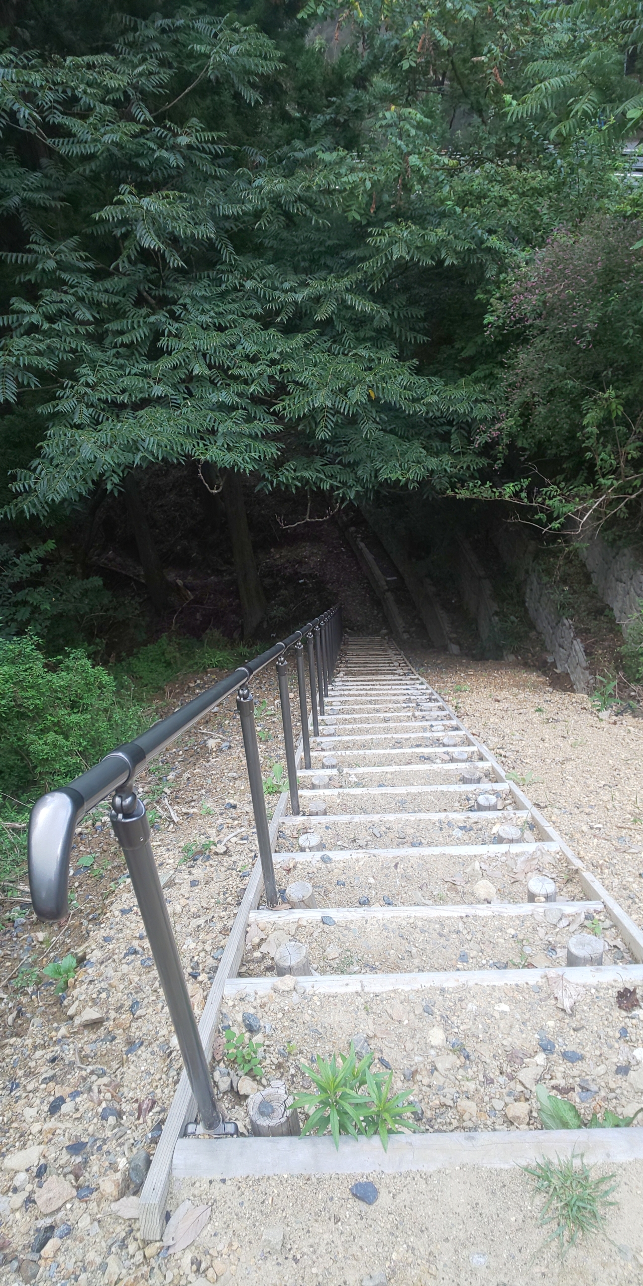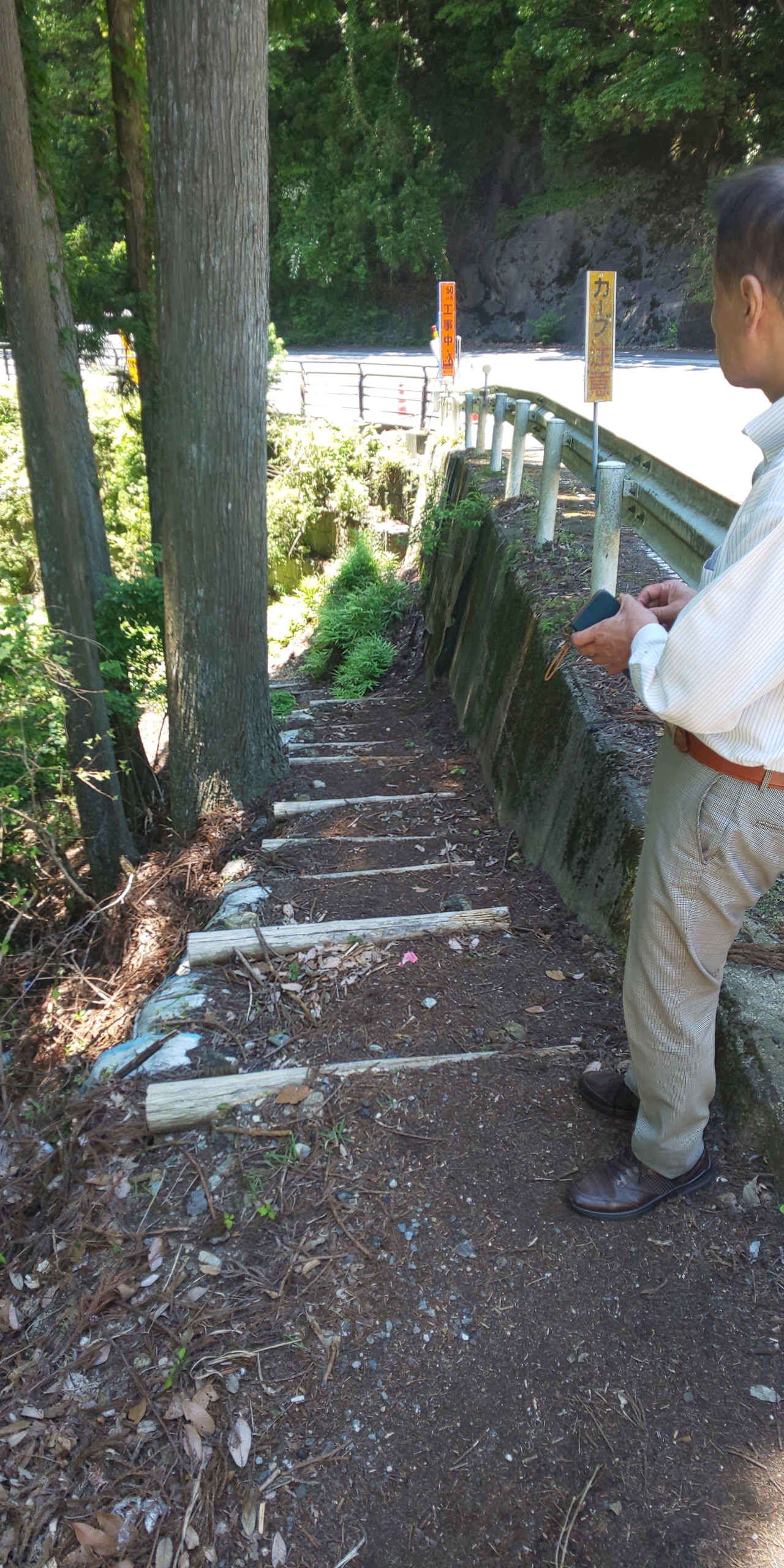 その後矢立を過ぎ32町石付近で国道へ上がる階段があります。