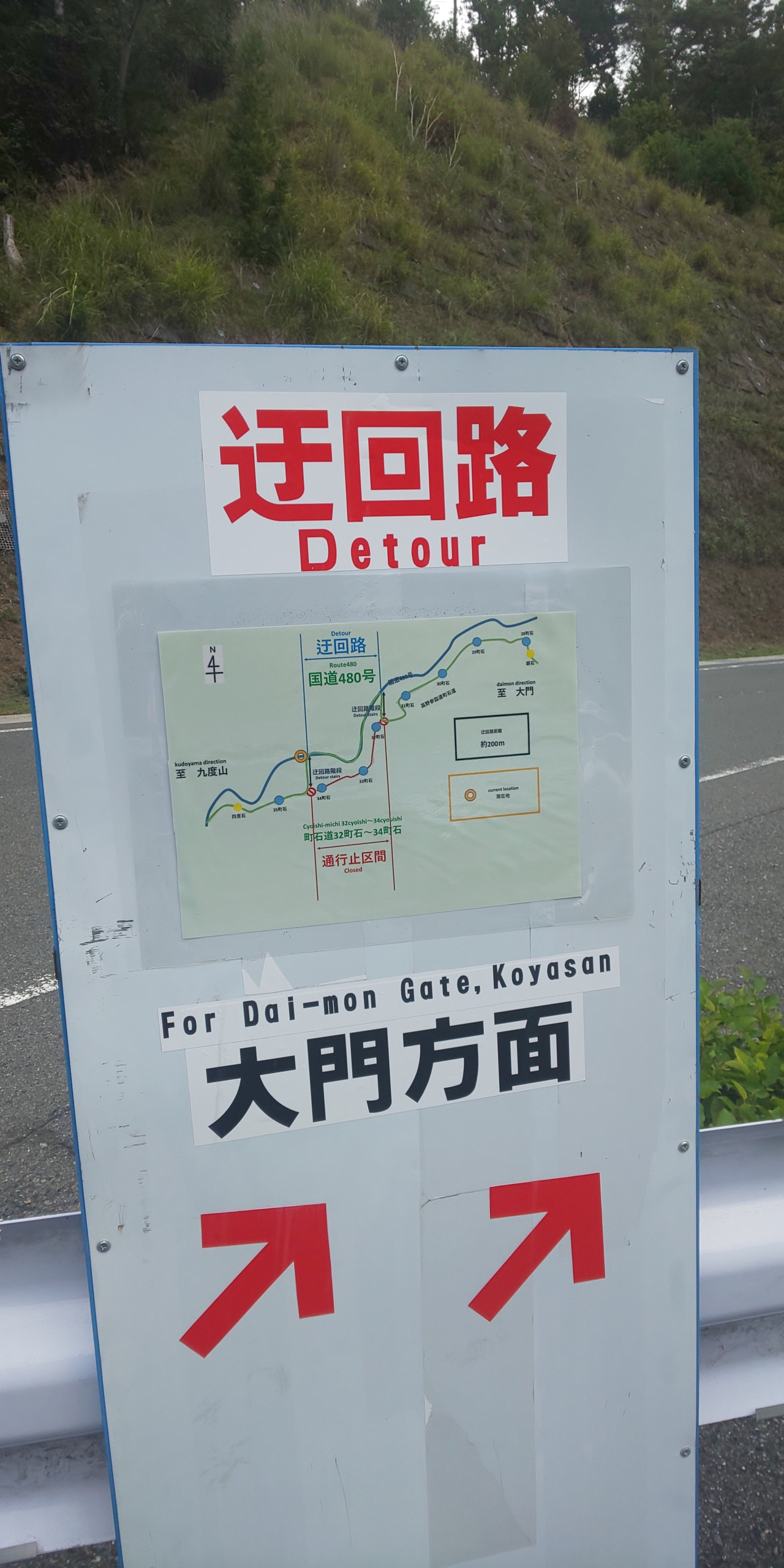 高野山町石道の現状をお伝えします。まず124石付近に行政案内の八丁坂を下りてゴルフ場の中を通り神田地蔵蔵へ迂回する案内があります。これを行くと約1時間ロスタイムと約5Km歩行が増えます。案内に従い迂回するかそのまま工事中のところがある116町石付近を注意して行くかは自己判断となります。